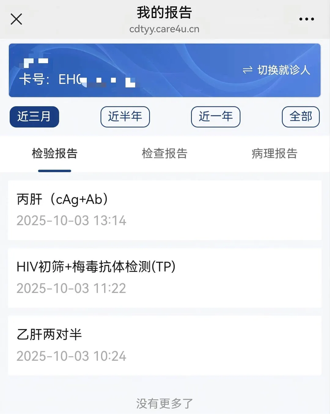 “我和我的同行人员查了HIV、梅毒、丙肝和乙肝四个项目,结果都是阴性。”不过医生提醒他们,病毒存在窗口期,后续还需多次检测才能排除感染风险。